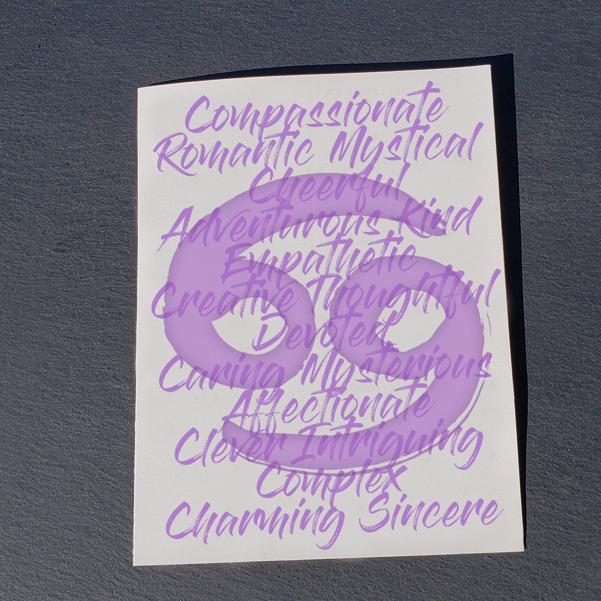 The front of the card features some of our favourite traits of this classic water sign, and the zodiac symbol hand painted across the text in a shimmer metallic watercolor.
